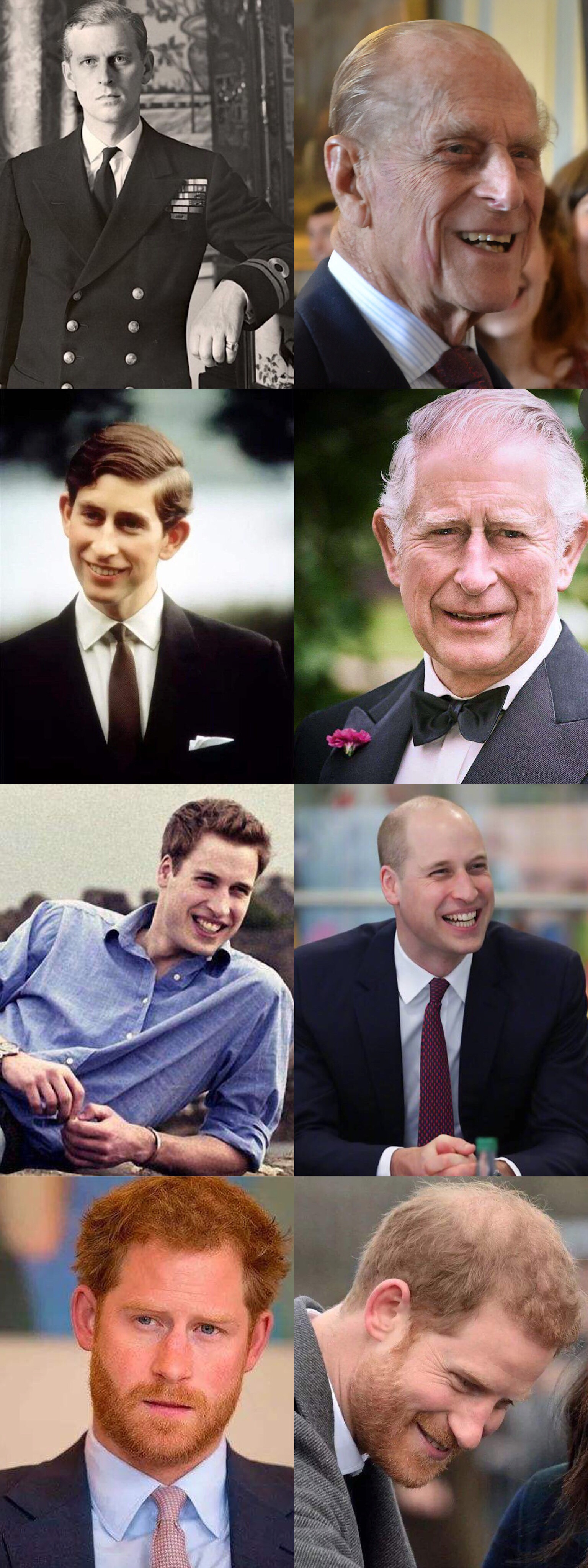 从菲利普亲王到查尔斯王子到威廉王子到哈里王子,英国皇室秃头为我们说明了一个问题:秃不秃,基因说了算
