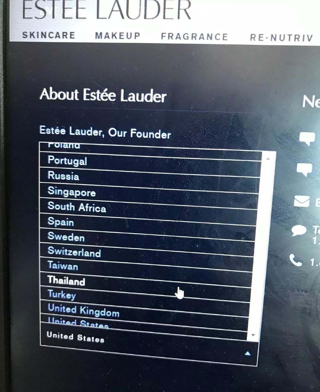 雅诗兰黛官网选择国家的界面竟然出现将台湾与其他国家并列的情况