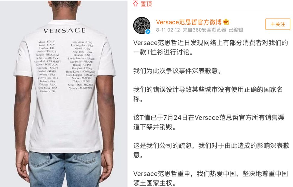 Versace不是第一个在中国领土问题上犯忌的品牌。