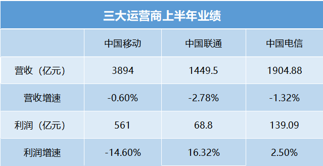 但实际上,今年上半年三家运营商无一例外都陷入了增长瓶颈,集体出现整体营收同比下滑。更严重的是中国移动,甚至出现营收、通信服务收入和净利润三个指标同时下滑,创下近十年来的最差表现。
