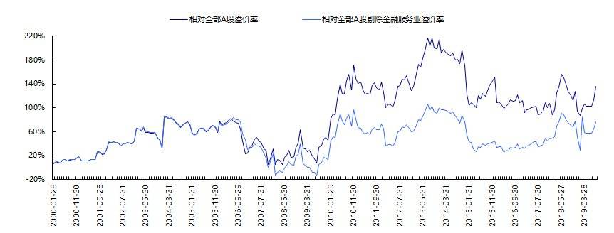 另一方面,虽然增速下滑,但是ROE有所提升。全A口径下,相比2018年上半年,ROE从10%上升至10.2%,全A两非ROE从7.8%上升至8.2%。