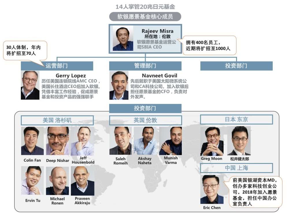 Rajeev Misra并没有停下"招兵买马"的脚步,今年他相继在上海、伦敦、洛杉矶和东京新设事业据点,同时大量收割投资界精英。目前,Misra所管理的愿景基金核心成员共有14人,400名员工。近年来,软银愿景基金的组织规模将进一步扩大。