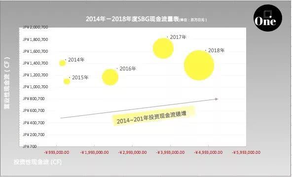 结合现金流数据,2017年开始软银集团的投资现金流总和成倍数增长,和愿景基金的成长频率一致,2017年和2018年投资导向现金流明显。(参考下图-1)。