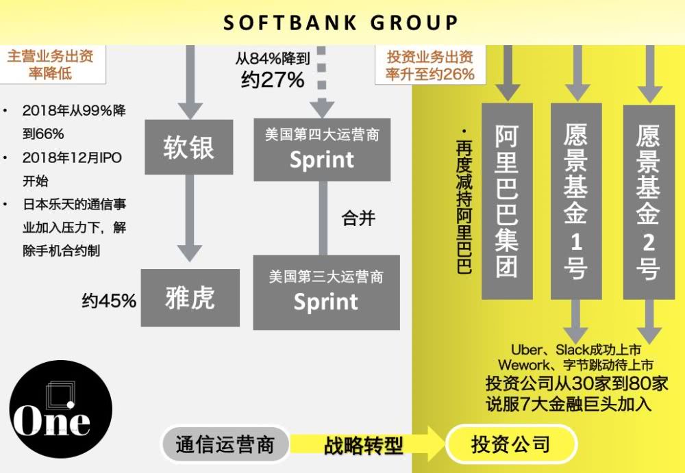 让旗下进入成熟期,发展放缓的子公司上市,合并。一步步剥离占营业收入总额70%以上的通信业务,降低出资比率,转而让市场为其供血。另一边却加大在愿景基金里的投资配比。一张一弛,环环紧扣,孙正义正在加快向战略投资公司转型的步伐。