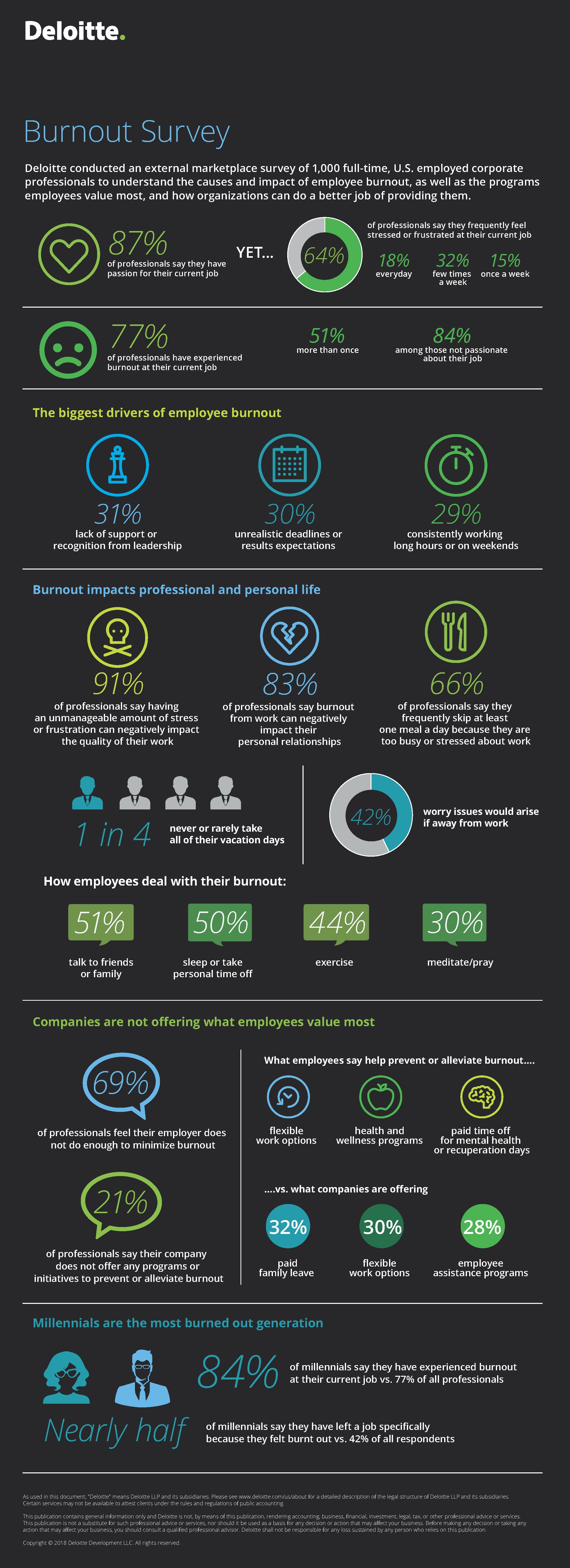 在美国德勤出具的“职场倦怠调查报告”中,美国职场的心理健康情况不容乐观 | www2.deloitte.com