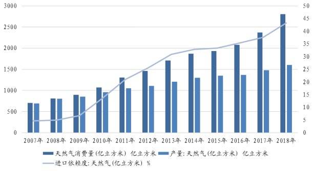 2018年,我国天然气的对外依存度达43.2%,并且还在逐年攀升。