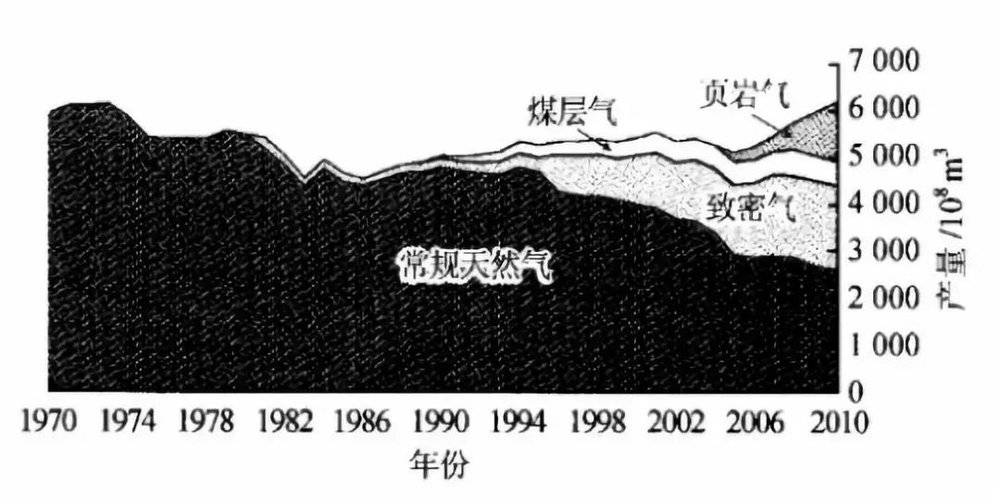 上世纪70年代,受石油危机影响,美国政府和企业都纷纷加大非常规油气的开采力度。页岩气产量由1976年的18.4亿立方米飙升至1997年的80亿立方米。