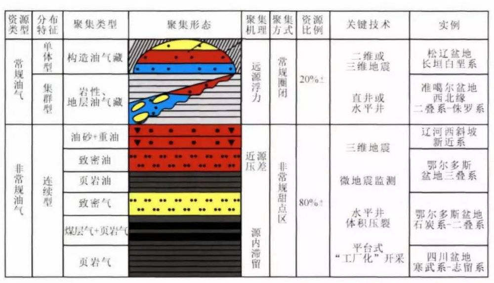 常规、非常规油气基本特征以及分布实例 数据来源:《非常规油气地质学建立及实践》