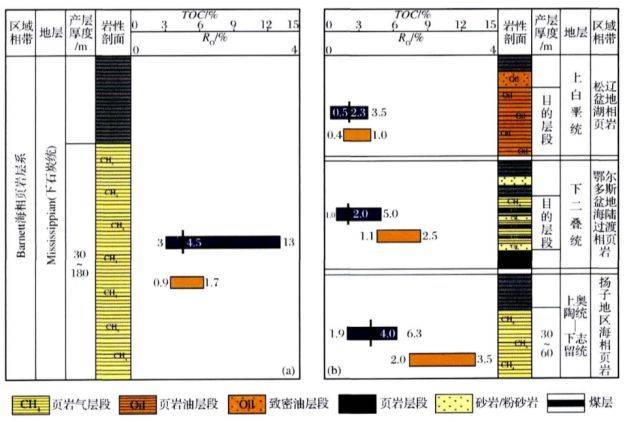 中美页岩气典型剖面对比 数据来源:《页岩气基本特征、主要挑战与未来前景》