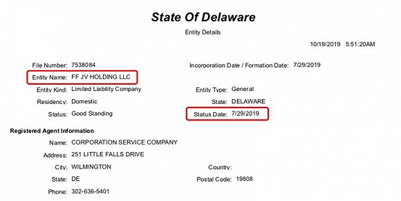 另外,该公司的的两位股东均为今年新注册的公司,其中The9 EV Limited为九城今年5月在香港注册公司。FF JV Holding LLC则于今年7月29日注册于美国特拉华。