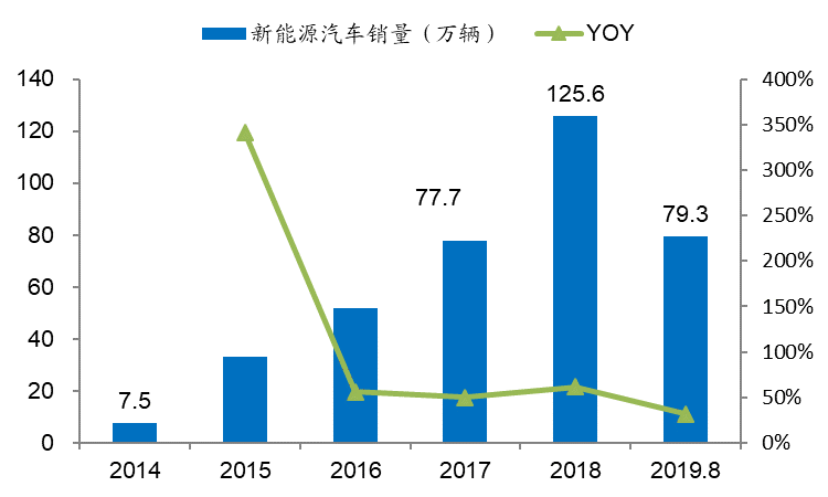 从保有量来看,我国新能源汽车从2015年的42万辆,跃升至2018年的261万辆,年复合增长率高达82.7%。