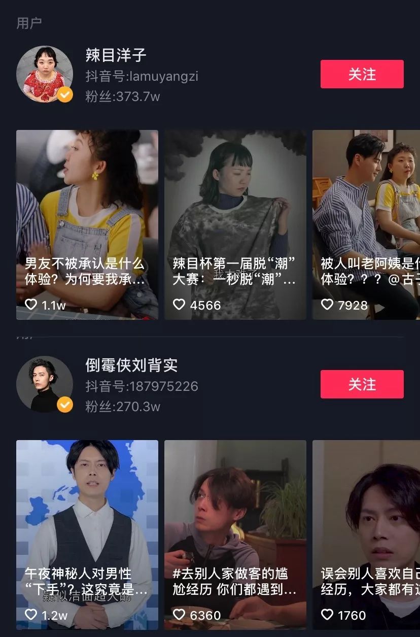 辣目洋子和刘背实在抖音拥有超650万粉丝