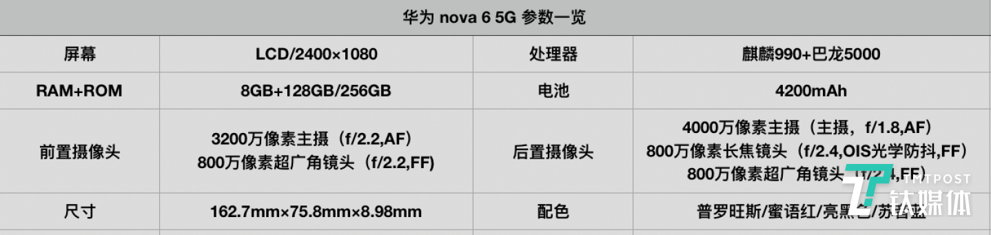 华为nova 6系列产品是此次发布会的主角,包括4G和5G版两个版本,其中仅有nova 6 5G搭载了3000万自动对焦+800万超广角的双摄。钛媒体在发布会之前就已经提前拿到了这款产品,关于这款产品的详细评测体验,可以点击这篇文章:首发 | 华为 Nova 6 5G 上手,不仅仅是“自拍美”,还要5G的“畅快”。