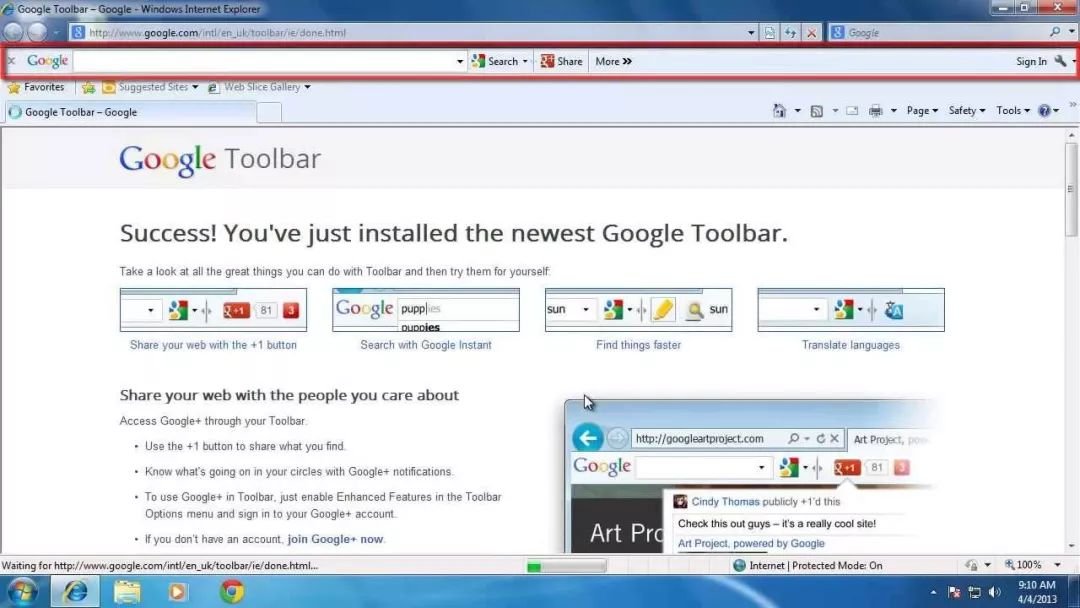 在那个被微软统治的 PC 互联网时代,Internet Explorer (IE) 是绝大多数用户的第一台电脑设备上预装的浏览器。当用户打开 IE,通过 Google Toolbar 无需额外的交互即可通过工具栏使用 Google 搜索。正是因此,皮查伊负责的 Google Toolbar,尽管不是一个很性感的产品,却成了 Google 搜索很重要的入口,成了这家年轻的公司在微软统治的生态中存在的一个突破点。