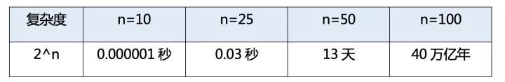 图3. 每秒运算1亿次的计算机求解2^n复杂度问题 所用时间