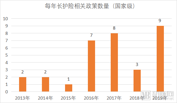 到了2019年,三年试点取得了较好的反响,社会各界对长期护理保险的呼声愈高。同时,3月份国务院总理李克强代表国务院向十三届全国人大二次会议作政府工作报告时提到:“扩大长期护理保险制度试点,让老年人拥有幸福的晚年。”这一年推动长期护理保险的国家级政策高达9项。