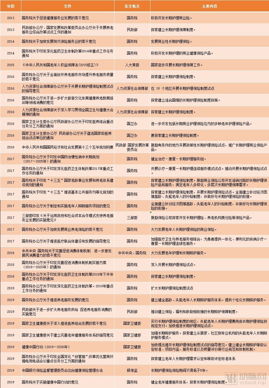 而从内容方面看,从前期的探索、提倡、试点,发展到后期的加快、加强、扩大及个性化。政策推动的脚步更加坚定且急促。且对商业长期护理保险从前期的推动,到2019年对其做了进一步的规范。