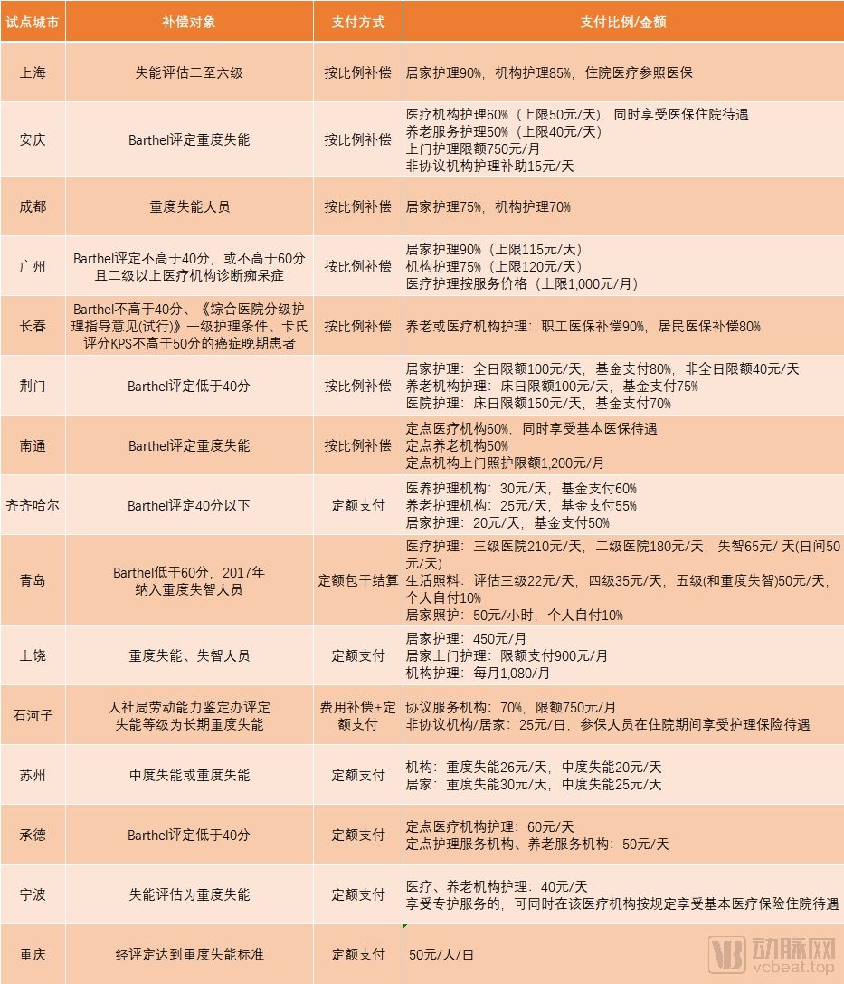 自2016年15个试点地区确定以后,这15个地区根据自身的经济实力及现实情况,制定了各自地区的具体方案,分别对保障对象、支付方式、支付比例/金额做出了详细的规定。