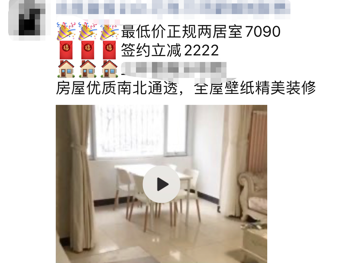 去年9月中旬,小刘负责的工作区域上架了一套99平米的精装大两居。7900元的月租价格,放在北京市西三环外这个寸土寸金的地方,真的算不上贵。但就是这样一个在小刘眼中性价比极高的精装房源,从2019走到了2020,依然每天出现在小刘的朋友圈里,只是价格在一路走低。