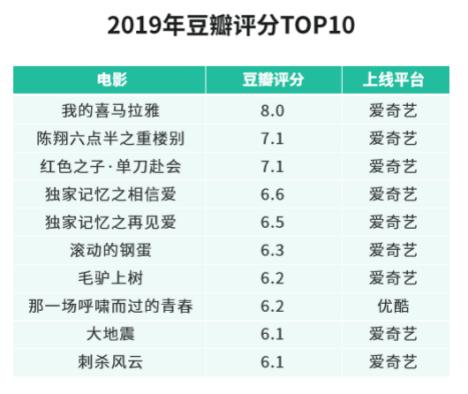 据统计,2019年共有12部网络电影的豆瓣评分在6分以上,特别是新出现的现实主义题材网络电影普遍口碑较好,例如《大地震》《毛驴上树》分别获得6.1和6.0的豆瓣评分,《我的喜马拉雅》豆瓣评分则高达8.0。