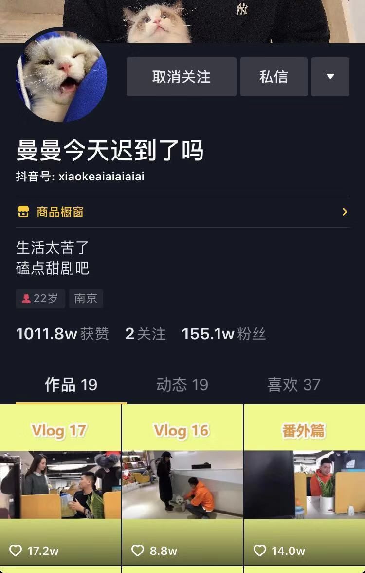这两个短视频平台目前都已有了人气作品:快手人气最高的短剧之一《这个王爷我想退货》,总播放量已突破2.7亿,平均每集播放量超1000万。快手上还有着“一人分饰N角”的短剧风潮,其中佳木斯的老铁“老四的快乐生活”还与《野狼disco》作者宝石GEM成了2019年“东北文艺复兴”的重要一员。12月5日才更新的抖音短剧《曼曼今天迟到了吗》粉丝已破155万,点赞数破1000万。