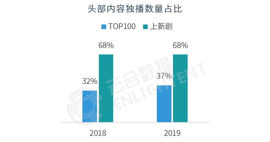 不过,2019年在拼播之外,为了体现内容的核心竞争力,平台也在纷纷打造“独播”的概念。根据云合数据显示,2019头部TOP 100连续剧中,独播比例达到了37%。在有效播放TOP 20中,7部均为独播剧,其中爱奇艺占据5部独播剧的位置、腾讯视频则是2部。