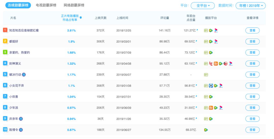 以下是毒眸对于2019年剧集行业的盘点与2020年的展望。