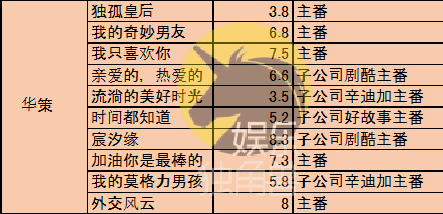 头部影视公司中,华策、完美依旧是今年的“数量大头”,但在影响层面,仅有华策主控的《亲爱的,热爱的》较为拿得出手。