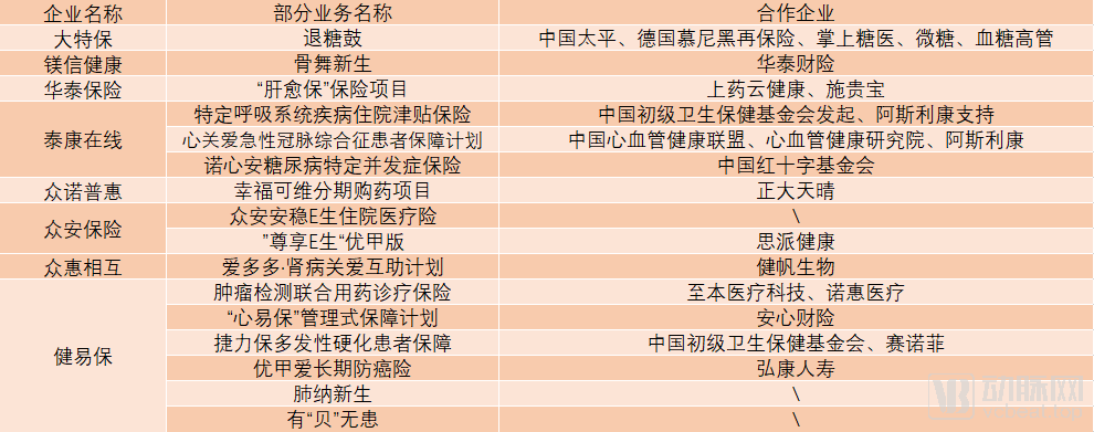 诸多保险企业已经开始探索带病投保,动脉网整理了数家险企的部分带病投保业务: