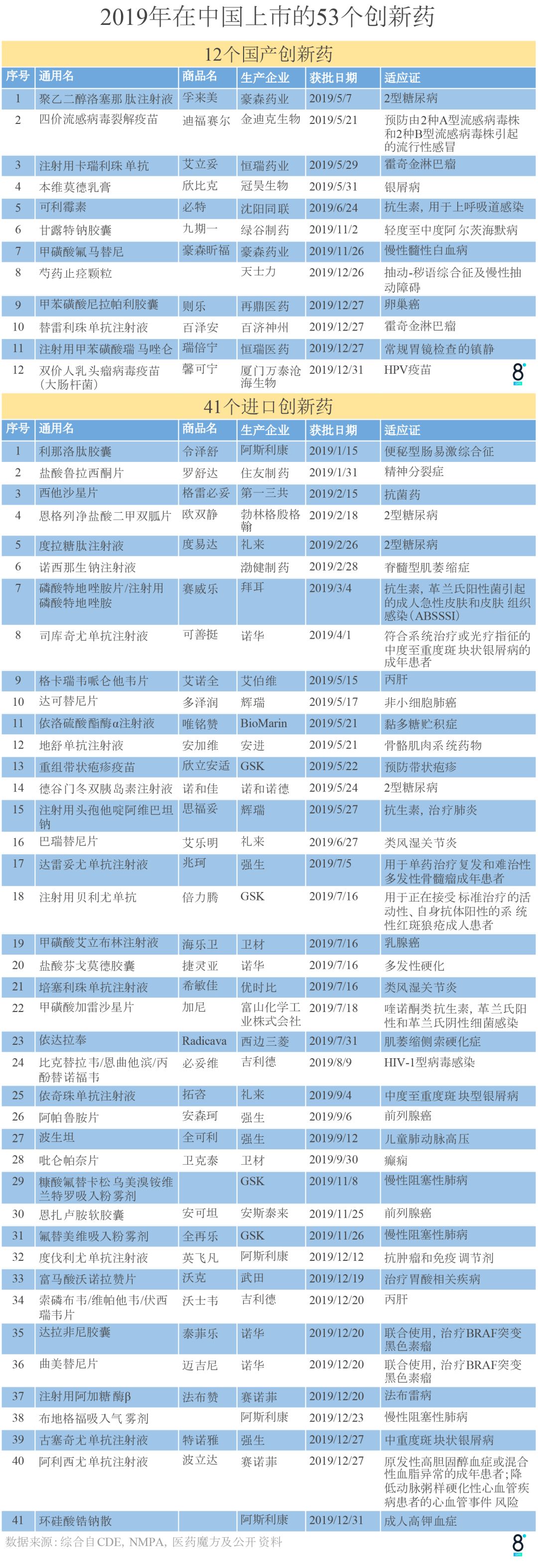 2019年中国有53个创新药获批,第一次超过美国(48个)。
