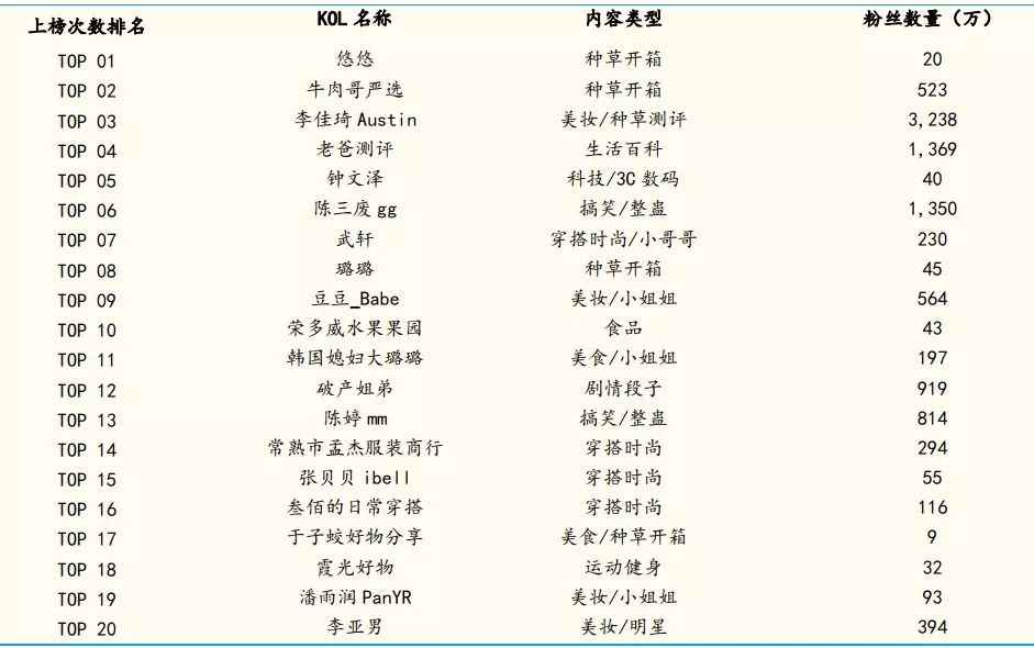 TOP 20销售大人中8个粉丝低于百万,但带货能力仍然非常出众。持续发布种草开箱类视频,将好物安利给有需求的用户,提升转化率成为中腰部主播成为达人的首选。