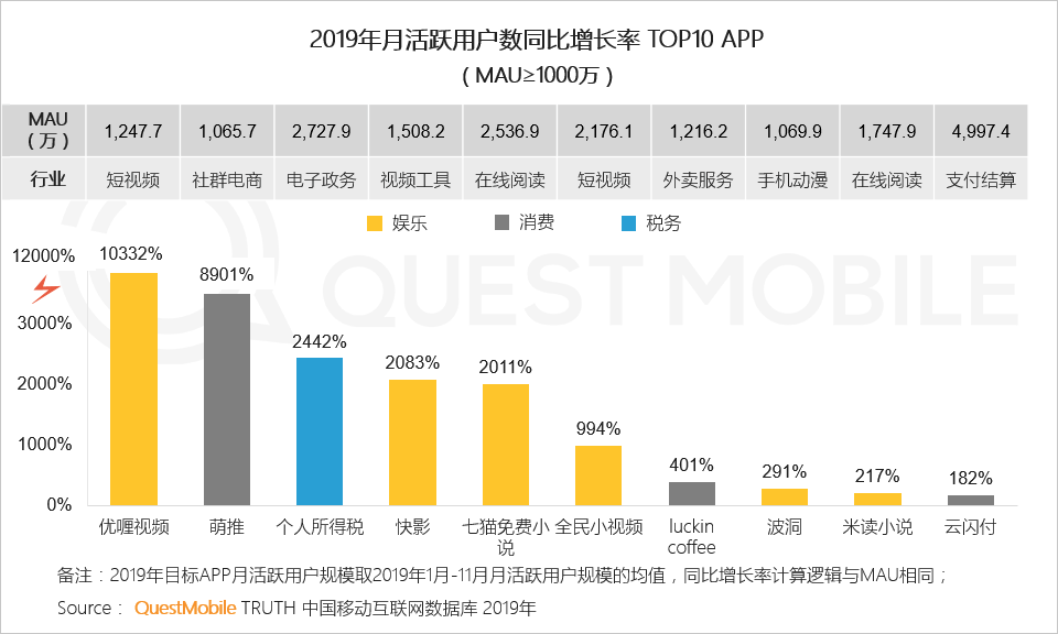 3、用户线上娱乐、消费轨迹更加立体,同时个人所得税APP专项附加扣除信息填报功能的上线,带动用户规模的增长
