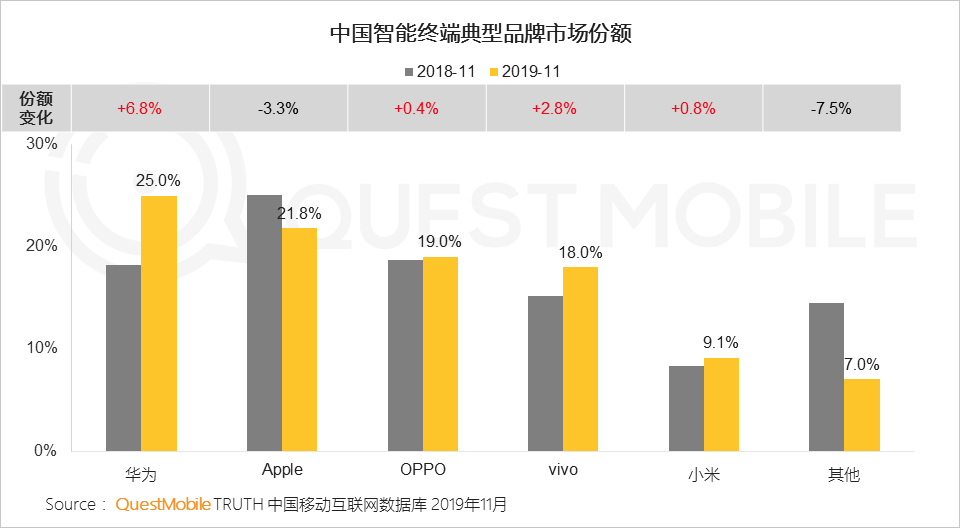 而基于消费场景构建的金融路径,已经成为带动支付、理财等领域增长的关键。在终端层面,5G到来,在拍照、流畅度、技术创新等要素影响下,华为手机已经超过苹果位居首位,OPPO、vivo、小米也在扩大市场份额。