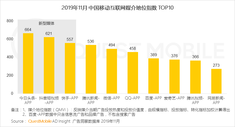 当然,最终而言,流量争夺,也在回归到商业价值本身,仅以广告为例,规模只是评估标准之一,投放指标、转化指标,都在影响媒介的价值,这当中,头条、抖音、快手等新型媒体也爆发出了强大的吸金能力。
