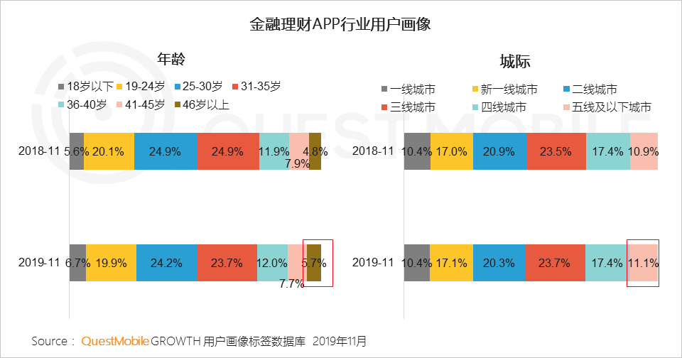 3、由于消费场景的不断丰富、用户支付习惯的培养,金融支付APP对46岁及以上的年长用户、五线及以下城市的下沉用户覆盖率有所提高