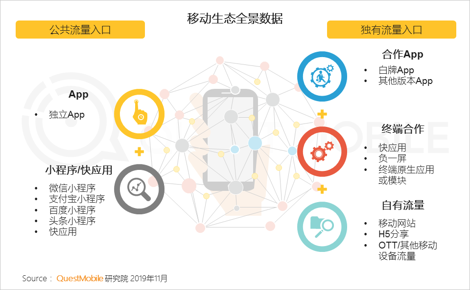 1、APP、小程序、终端合作以及Web、H5等多样化的流量矩阵共同形成全景生态流量体系