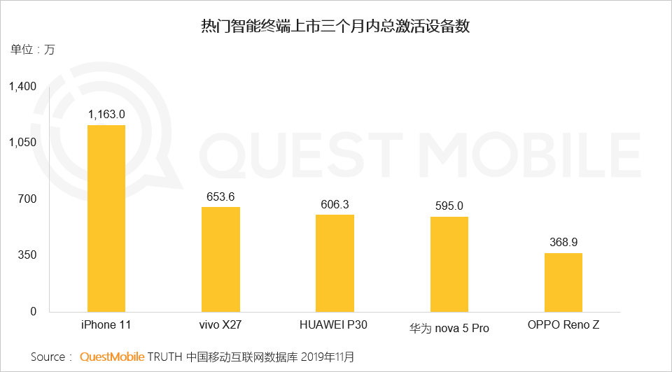 3、iPhone11凭借价格优势在上市三个月内销量达1163万,成为2019年最受欢迎的机型