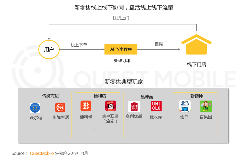 2、新零售典型玩家通过线上+线下的方式联动实体业务发展,线上流量增长亮眼