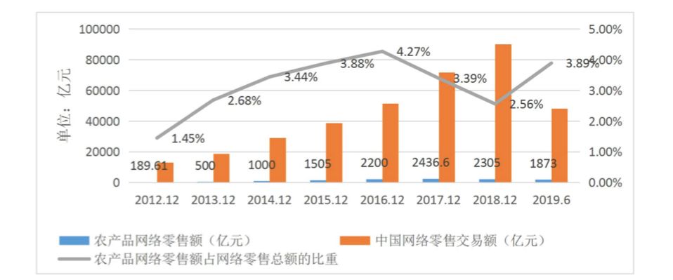 我国农产品网络销售额比重变化趋势(摘自商务部报告)
