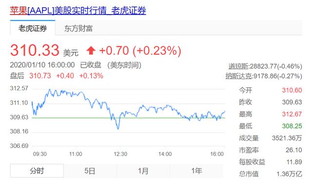都说2019年是过去十年中最艰难的一年,但是2019年却是苹果近10年来表现最好的一年,2019年苹果股价一直在不断上涨,年涨幅超过100%,股价涨了超过5300亿美金,足足涨了一个阿里。目前苹果总市值达到了1.36万亿美金。