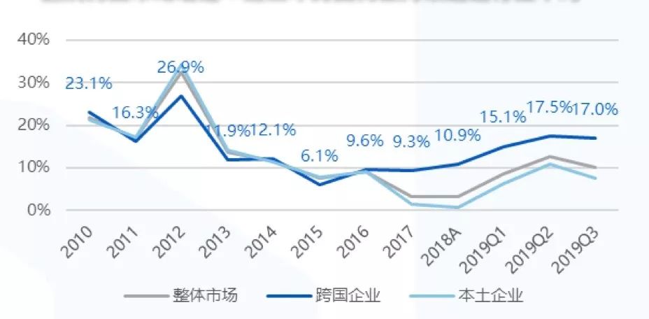从IQVIA的数据看,从17年到现在,跨国药企的收入增长,明显超过了行业的平均增速,也远远超过了本土企业的增速。