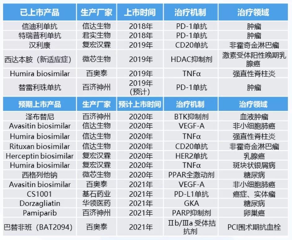 是谁顶替了它们呢?分别是石药集团的恩必普、罗氏的安维汀、罗氏的赫赛汀,以及绿叶的力朴素四个爆款品种。