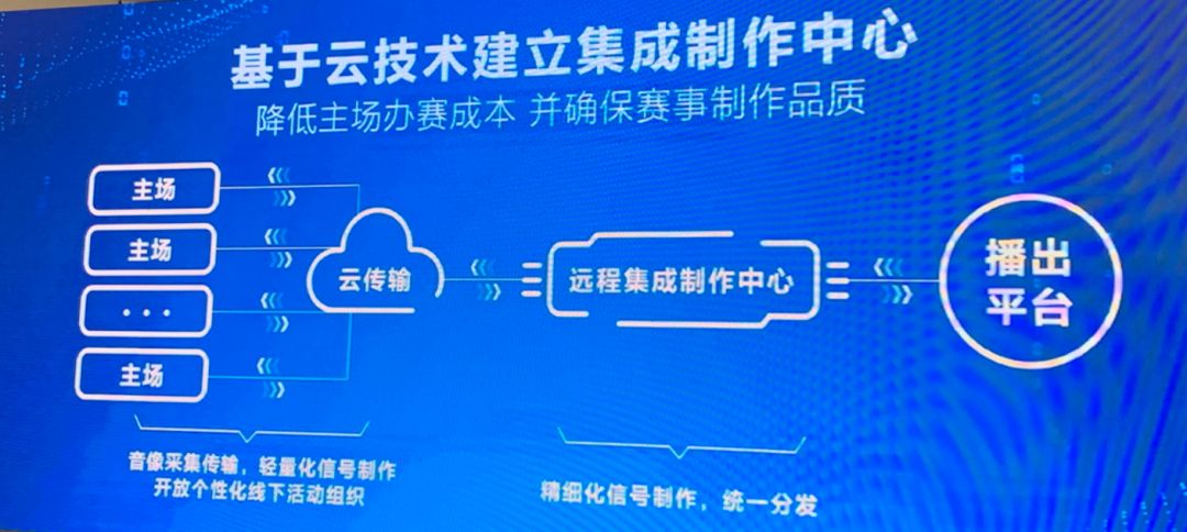 KPL联盟基于云技术,组建了一个位于上海的远程集成制作中心,将地方主场的音像和轻量化信号云传输到上海,经过精细化制作后,统一分发到播出平台。