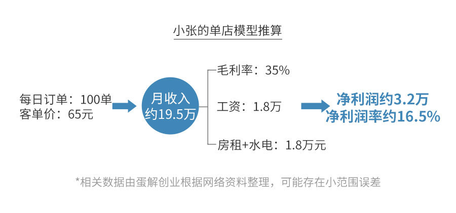 根据小编看到的实际情况结合王叔给出的数据,可以简单估算这家店的营收情况。