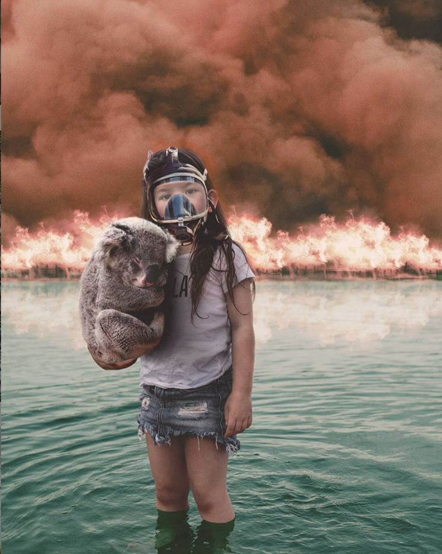 这次大火中,受影响的动物不计其数,而作为澳大利亚标志性动物的考拉自然也成为了人们关注的重点对象。当这张小女孩抱着考拉、立于熊熊大火的图片出现在Twitter上以后,又是一阵跟风转发,热议不息。