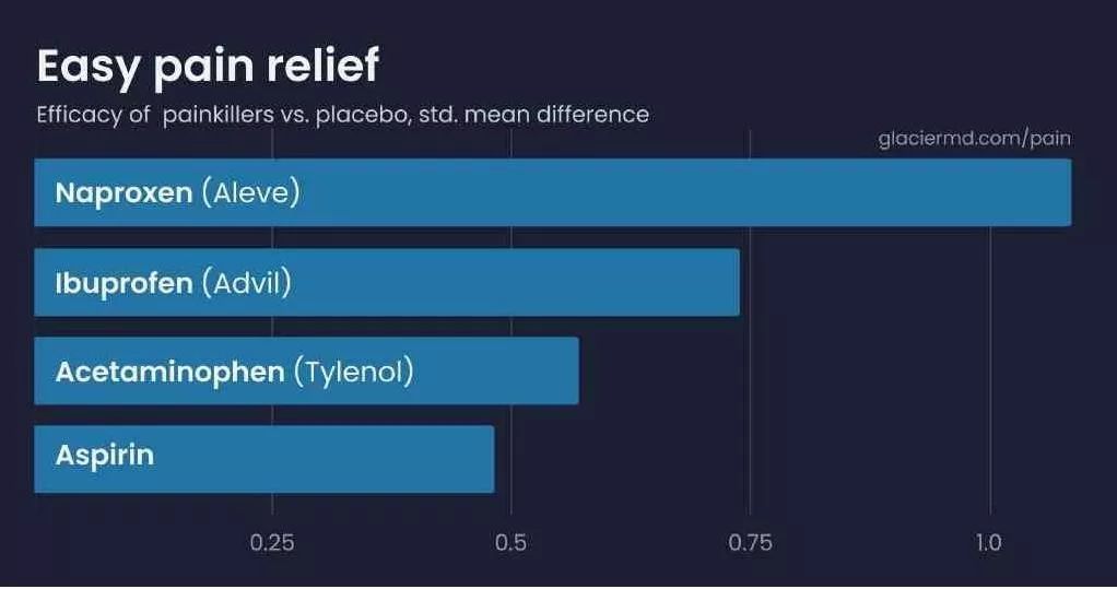 作为概念验证,我进行了一次尝试:收集了尽可能多的OTC止痛药临床试验数据,按照循证医学的方式做了一个网络荟萃分析(NMA),结果让我兴奋,我得到了一个简洁又有说服力的图表。