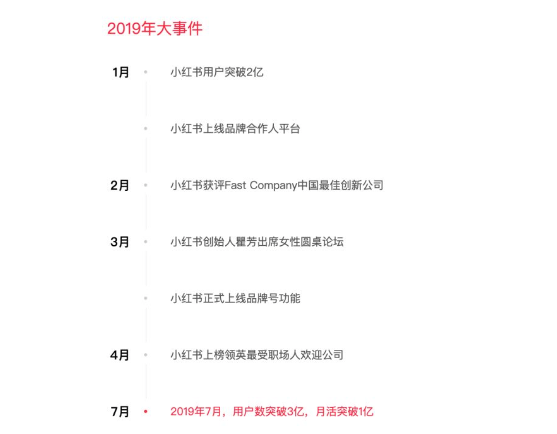 刚刚过去的2019年,小红书凭借着“种草”社区的逻辑,迎来了阶段性的顶峰。根据小红书官网的信息显示:2019年1月平台用户突破两亿,7月份用户数量就突破了3亿。在一个流量凸显匮乏的年代,6个月时间增长了一个亿用户,这半年时间无疑是小红书的高光时刻。