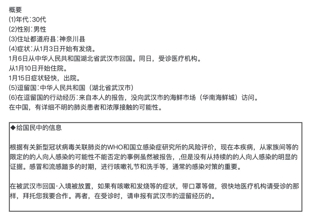 △ 日本确诊病例的通告,图片来源:日本厚生劳动省官网截图