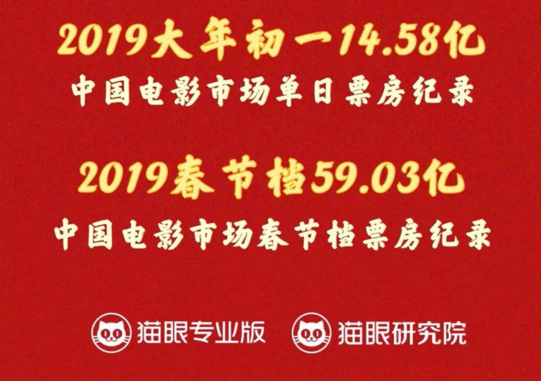 2018年大年初一单日票房进入10亿时代,2019年大年初一14.58亿的单日票房创造了新的纪录。而缺乏预售的足够支撑,今年大年初一票房落点成为了外界关注的重点。