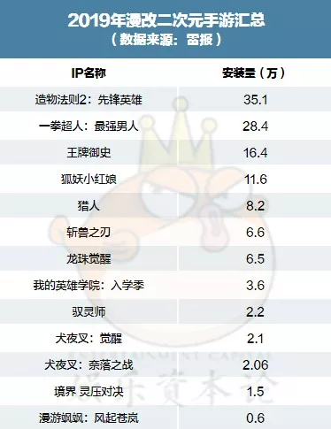 与真人剧相比,同为二次元的游戏项目与漫画的联动则更加流畅。据雷报报道显示,2019年二次元手游共61款,其中13款为漫改。腾讯动漫的《狐妖小红娘》、《王牌御史》的漫改手游年度表现不俗。据梅雪介绍,腾讯动漫的《一人之下》、《从前有座灵剑山》、《妖怪名单》的漫改游戏也将会在今年上线。